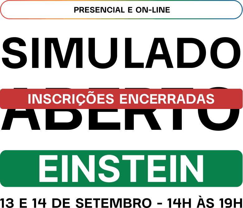 Modelo EINSTEIN: 50 questões objetivas + 5 questões dissertativas + 1 redação;